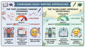 The modern university experience often feels like a non-stop sprint. Between back-to-back lectures, part-time jobs, and the social pressure to be constantly “active,” the academic portion of life—specifically essay writing—frequently becomes a source of frantic, last-minute stress. We have been taught that speed is a virtue and that pulling an all-night session fueled by caffeine is a rite of passage. However, this “hustle culture” is increasingly leading to burnout and mediocre grades. There is a better way to navigate the pressures of higher education: the Slow Living movement.